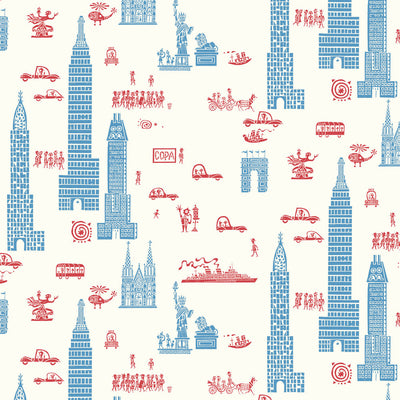 Manhattan Wallpaper by Jim Flora - Red Blue
