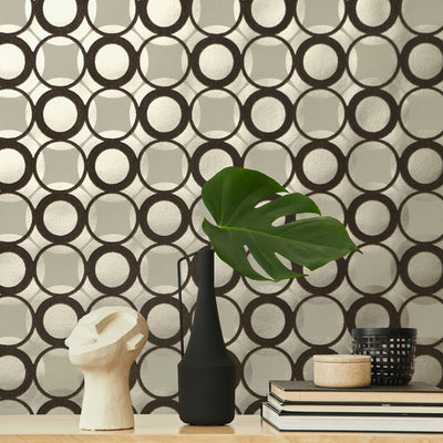 Bamboo Lattice on Silver Leaf Wallpaper - Brown Silver