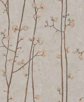 Delicate blossoms from "Flowering Plum Tree (after Hiroshige)" by Vincent van Gogh (1887) are isolated and repeated into this lovely floral pattern.