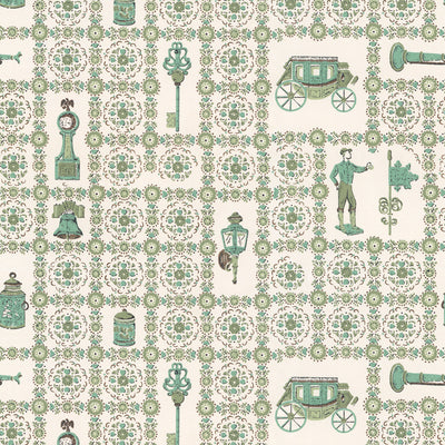 Knick-Knack is a vintage design with linear elements and a jade green colorway. The classic motifs throughout add a rustic appearance to the pattern, allowing it to instantly refine a space. Part of our 1940s-1950s wallcovering collection, this is digitally printed to order and can be customized in scale, color, and material.