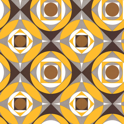 Mod Madness draws inspiration from elements of pop art. The retro colorway features pops of yellow and brown in various geometric shapes. This abstract appearance makes it versatile for a number of spaces in need of an energy boost. Part of our 1960s-1970s wallcovering collection, this design is digitally printed to order and can be customized in scale, color, and material.