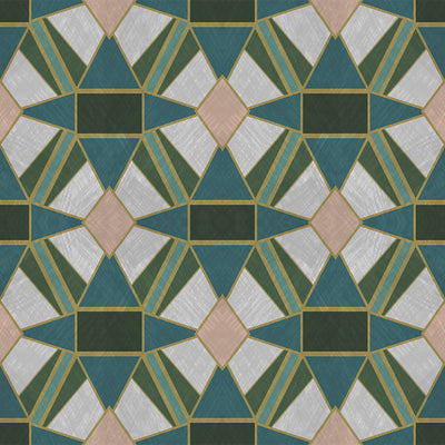 Montmartre has a stained glass appearance to replicate this look on walls. Colorful mosaics come together in this wallpaper to create an Art Deco-inspired appearance.