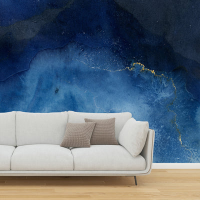 Using the cyanotype technique, Photogram 1 captures the movement of saltwater on light sensitive paper. The resulting mural is a melody of textures and tones with oxidized golden threads caused by elements colliding.