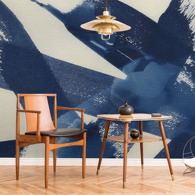 Light sensitive chemicals are painted on paper in bold, calligraphy-inspired brushstrokes in this dynamic cyanotype mural.