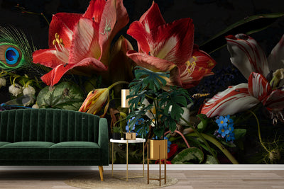 Created by Dutch artist Bas Meeuws, each element in this artwork was photographed and digitally composed to create a lush floral arrangement. Inspired by traditional still life paintings, this mural is bursting with gorgeous and unexpected details, including butterflies and snails hidden among the tulips.