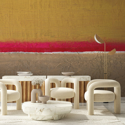 Inspired by a desert mirage forming on an evening horizon, our Vista 18 wallcovering is a striking interpretation of space. Originally painted with bold red and tawny gold pigment on board, this design brings an artistic element to interiors. Vista 18 is digitally printed to order as a repeating mural.